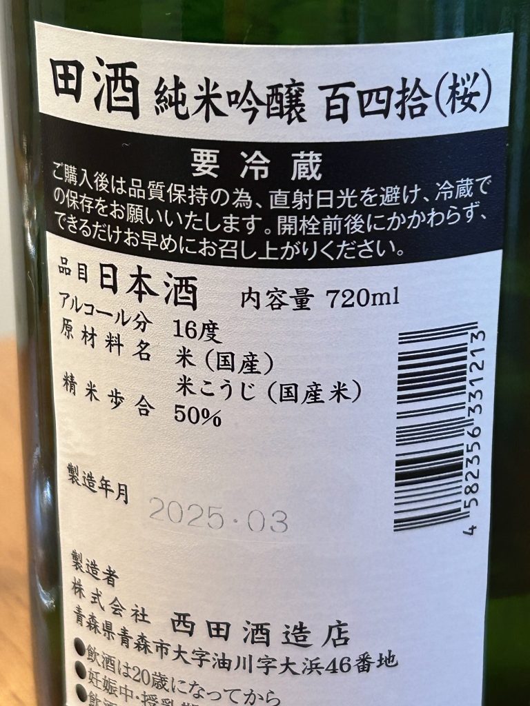 それが、田酒 純米吟醸 百四拾 華想い(青森県)でした!