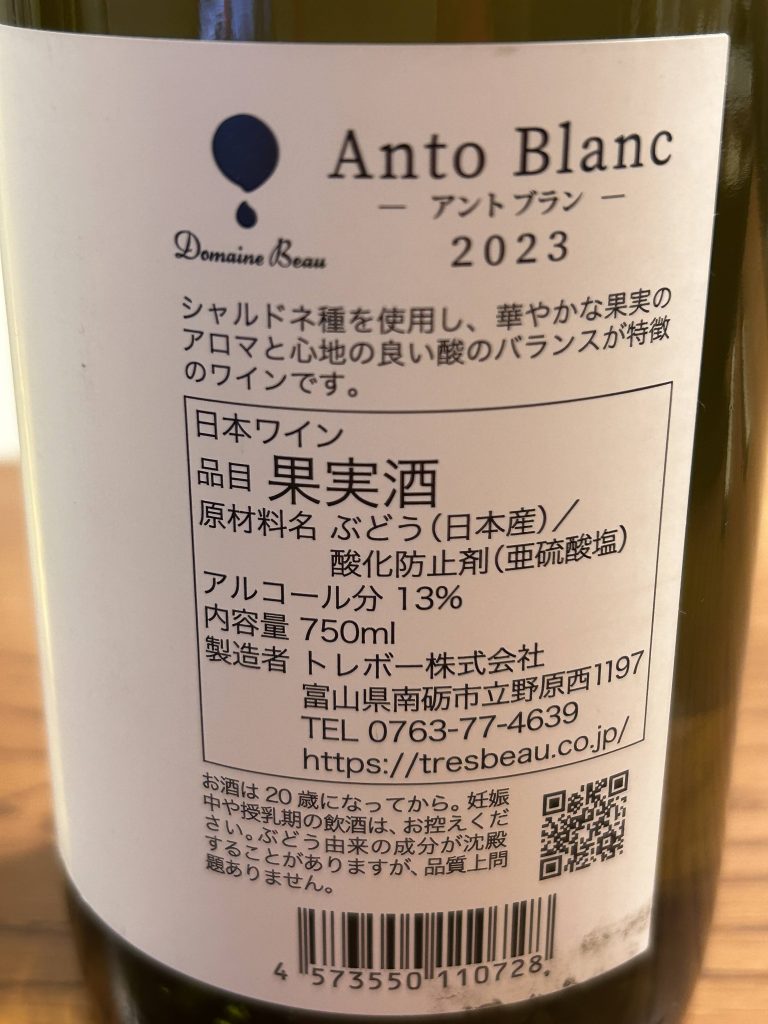 I recently had the pleasure of purchasing a white wine from Domaine Beau, a winery in Toyama Prefecture.