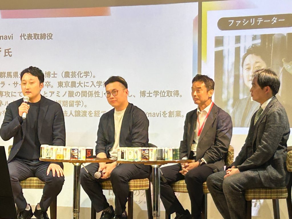 The final session was “Potential for Inbound Tourism and Export.” With the UNESCO Intangible Cultural Heritage registration, the discussion focused on strategies for further global expansion of sake. Mr. Kelvin Sham from Hong Kong MX Supply Chain Ltd. and Mr. Hirase from Mitsubishi Estate Co., Ltd. took the stage, with Mr. Gen from Agnavi serving as the facilitator.