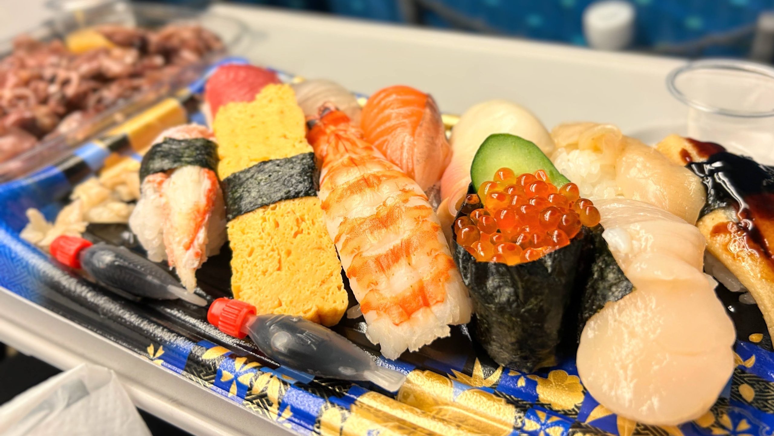 Ta-da! A colorful assortment of sushi 🍣✨ And, convinced that it would pair perfectly with sake from the Hokuriku region, we got some firefly squid 🦑, a specialty of Toyama. Once this season arrives, I end up reaching for it almost every week (laughs).
